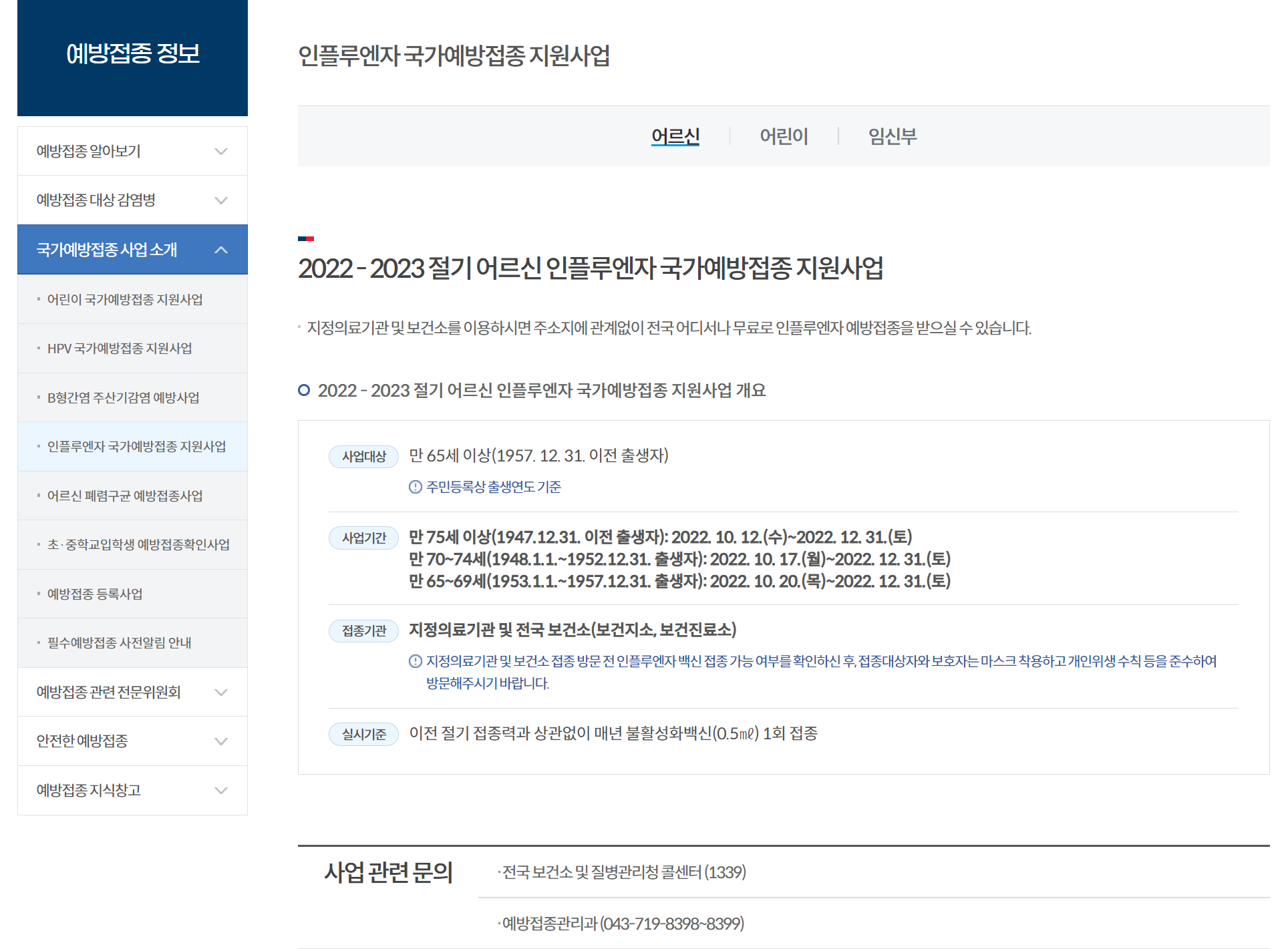 1. 어르신 독감 무료접종 대상