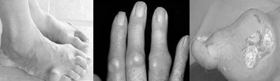 결정이 주위에 축적되어 만져지는 현상인데요. 이러한 지점에 이르기 훨씬 전부터 관절이 많이 아팠을 텐데, 결정을 녹이면 사라질 수 있어요.