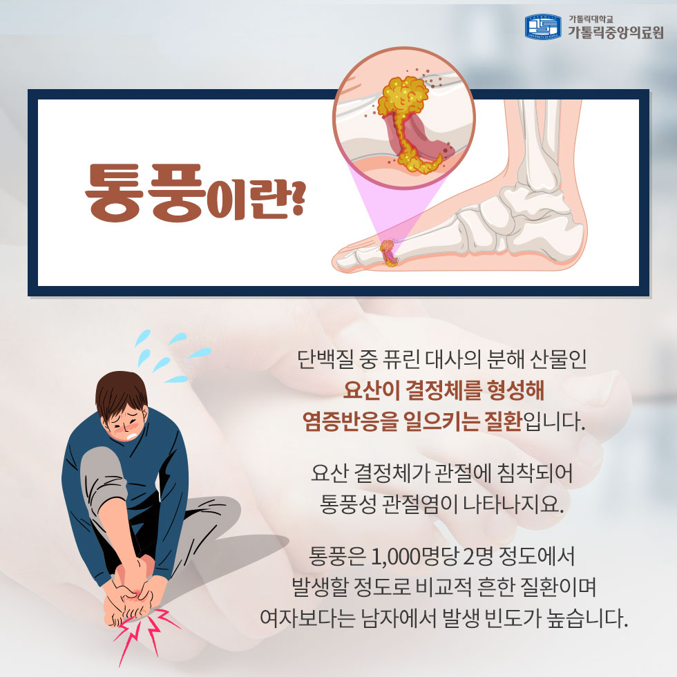 요산수치가 만약 높다면 갑자스럽게 통풍이 올 수 있습니다.